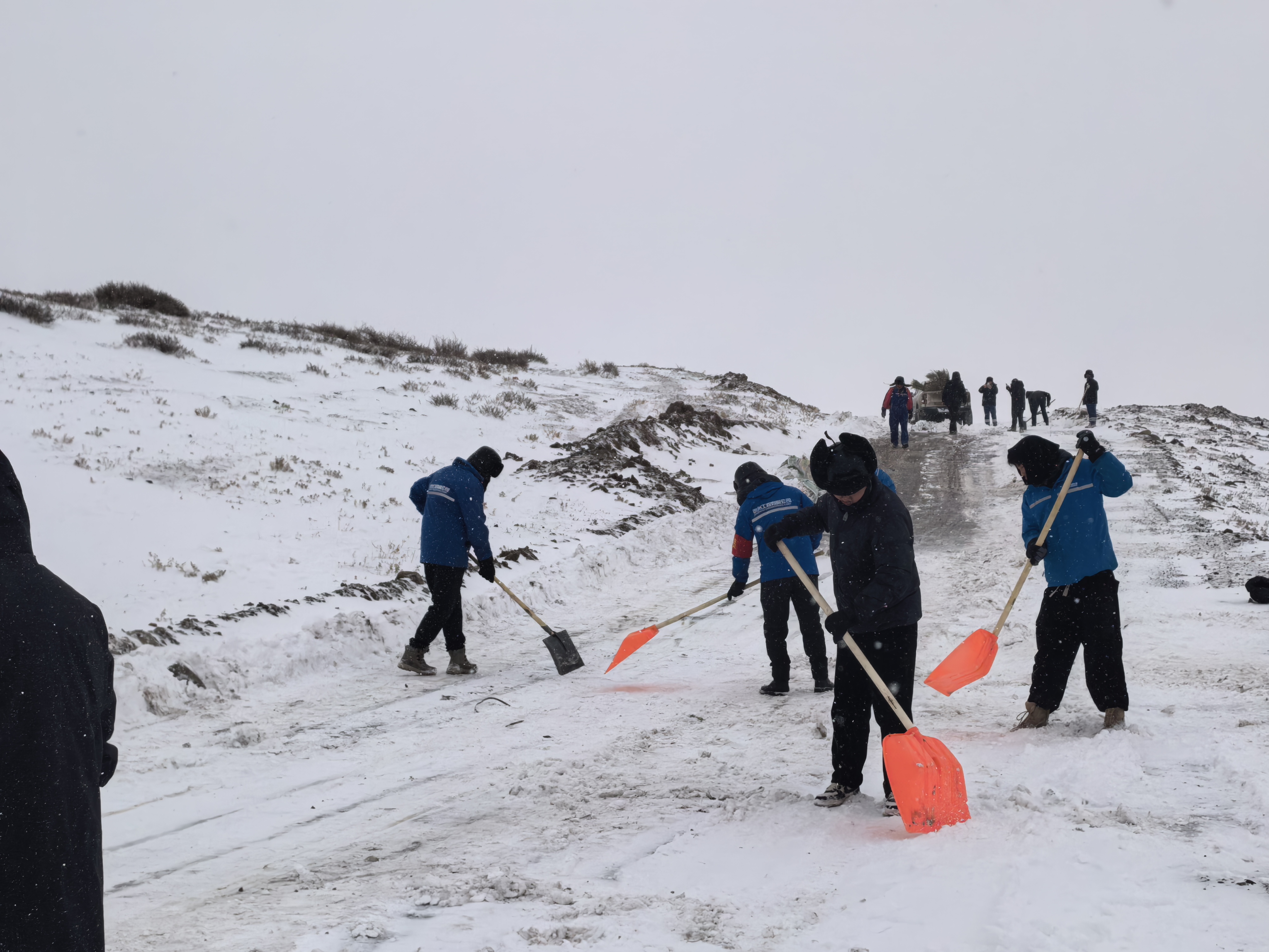 本網(wǎng)訊? 在蒼茫的天山北麓,公司承建的中電神火木壘800兆瓦風(fēng)電風(fēng)機(jī)吊裝施工的項(xiàng)目現(xiàn)場,宛如銀裝素裹世界里的鋼鐵森林,與漫天飛雪展開著無聲的較量。這里不僅是能源建設(shè)的“戰(zhàn)場”,更是項(xiàng)目黨員們踐行初心使命的熔爐。當(dāng)暴雪裹挾著極寒呼嘯而至,項(xiàng)目部擎起“黨員突擊隊(duì)”的鮮紅旗幟,以鋼鐵般的意志與風(fēng)雪正面交鋒,在8公里運(yùn)輸生命線的清障保通中,書寫著新時代能源建設(shè)者的責(zé)任擔(dān)當(dāng)。 黨旗引路 突擊隊(duì)火速出征 暴雪突至的清晨,項(xiàng)目部應(yīng)急指揮群里早已熱鬧起來。項(xiàng)目部黨員骨干率先請纓,短短20分鐘內(nèi),5支“掃雪突擊隊(duì)”在風(fēng)雪中迅速組建完成,明確了“分片包保、黨員帶頭、全員協(xié)作”的攻堅(jiān)方案。黨員突擊隊(duì)隊(duì)長扛起鐵鍬,胸前的黨徽在白雪映襯下熠熠生輝:“這8公里路是設(shè)備運(yùn)輸?shù)纳€,今天必須打通,絕不能耽誤工期!” 各隊(duì)伍迅速劃分責(zé)任區(qū),將8公里主干道細(xì)化為5個責(zé)任段。項(xiàng)目黨員們手持鐵鍬、掃帚率先踏上積雪最深的路段,身后20余名隊(duì)員緊隨其后,形成“黨員帶頭、骨干跟進(jìn)、職工參與”的作戰(zhàn)矩陣,寒風(fēng)中飄揚(yáng)的旗幟成為最動人的風(fēng)景。 黨徽閃耀 寒雪中筑牢防線 寒風(fēng)刺骨、積雪過膝,卻擋不住“掃雪突擊隊(duì)”的攻堅(jiān)腳步。青年黨員們創(chuàng)新采用“先鏟雪核、再清余雪”的協(xié)作方法,將原本2小時的工作量壓縮至1小時。連續(xù)4小時的奮戰(zhàn)中,項(xiàng)目團(tuán)隊(duì)的分工從未間斷:有的專門攻克積雪最厚的“硬骨頭”路段,有的往返兩公里運(yùn)送熱水保障團(tuán)隊(duì)取暖,有的徒步排查路面暗冰并標(biāo)記警示樁。當(dāng)正午的陽光穿透云層,8公里運(yùn)輸主干道終于恢復(fù)暢通,此時隊(duì)員們的工裝已結(jié)上厚厚的冰碴,睫毛掛著霜花,卻紛紛站在“黨員突擊隊(duì)”的旗幟下露出笑容。當(dāng)天下午,載著風(fēng)機(jī)葉片的運(yùn)輸車順利駛過清理后的道路,如期抵達(dá)吊裝現(xiàn)場。 黨建賦能 實(shí)踐中彰顯擔(dān)當(dāng) 在這場與風(fēng)雪的較量,是黨員先鋒模范作用的生動展現(xiàn),更用實(shí)際行動為“兩個主題實(shí)踐活動”寫下鮮活注腳。黨員突擊隊(duì)的快速響應(yīng)與高效攻堅(jiān),不僅確保了風(fēng)機(jī)大部件運(yùn)輸計(jì)劃毫不受阻,更守住了冬季施工的關(guān)鍵工期節(jié)點(diǎn),用“保道路暢通、護(hù)項(xiàng)目進(jìn)度”的務(wù)實(shí)行動,踐行了黨員的初心使命。 此次清雪保暢行動,不僅檢驗(yàn)了項(xiàng)目部的應(yīng)急動員能力,更讓“黨員帶頭、全員攻堅(jiān)”的理念深入人心。在這片冰雪覆蓋的戈壁上,黨員突擊隊(duì)用雙手打通的不僅是運(yùn)輸之路,更是項(xiàng)目建設(shè)的“加速之路”,為這一綠色能源工程的順利推進(jìn)注入了強(qiáng)勁的紅色動力。 |